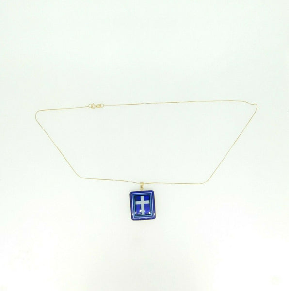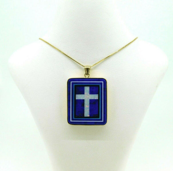 Kaufmann 14K Gold Intarsia Pendant with Genuine Natural Opal Cross (#J4373)