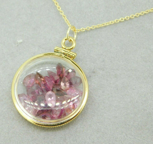Amazing vintage gold filled shaker locket, circa 1960! These are new-old stock lockets. The frames and chains are gold filled, with two acrylic covers. We filled these see-through pendants with gorgeous genuine gemstones! There are 2 sizes available. The larger nickel size that have about 4 carats of gems, and measure about 28mmx21mm. The little smaller than dime sized have about 1.50 carats of gems and measure about 21mm x 15mm. The pendants each include a 20" yellow gold-filled chain. Make your choice from the drop down box above.