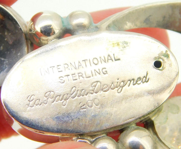 Beautiful handwrought sterling pin #200 made by International designed by Alphonse La Paglia. It measures 1 7/8" x 7/8" or 50mm x 22mm. The pin weighs 9.6 dwt., and it dates from the 1940-50s. Fabulous!