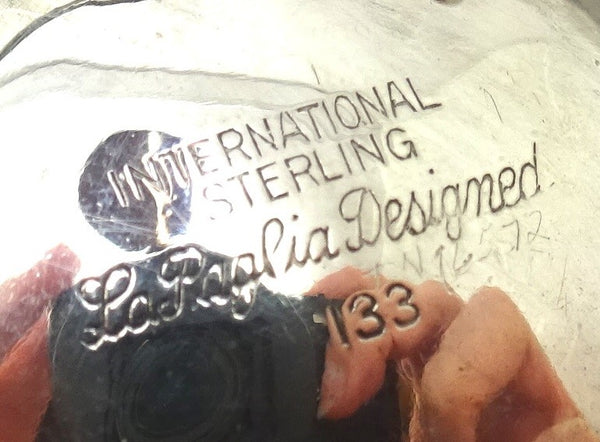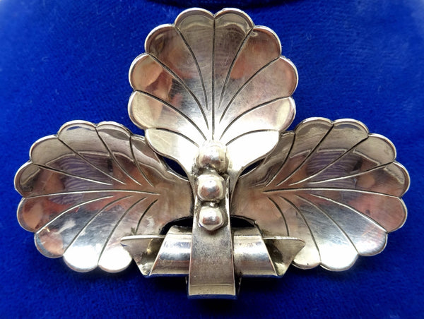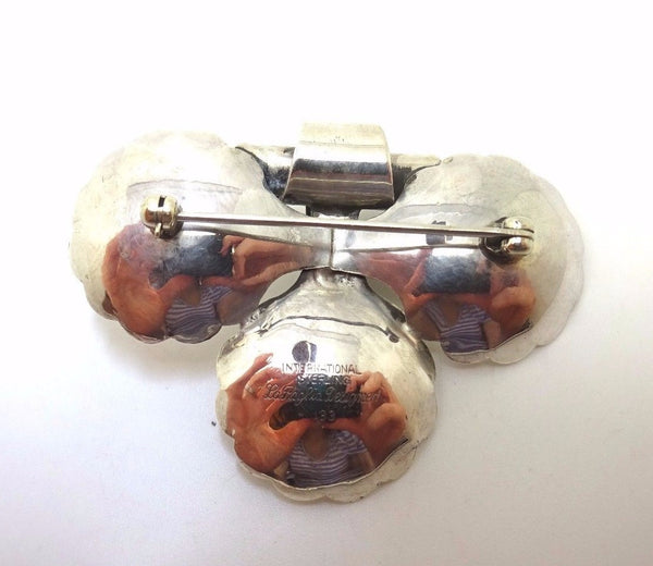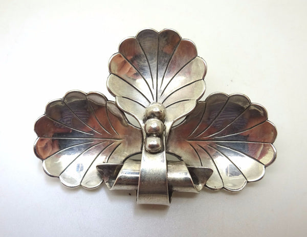 Fabulous large handwrought sterling pin #133 made by International and designed by Alphonse La Paglia. There are three leaves with beads. It measures 57mm x 42mm or 2 1/8" x 1 1/2", it weighs 9.9 dwt., and it dates from the 1940-50s. Beautiful!
