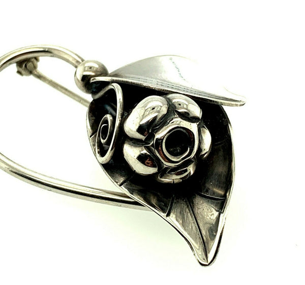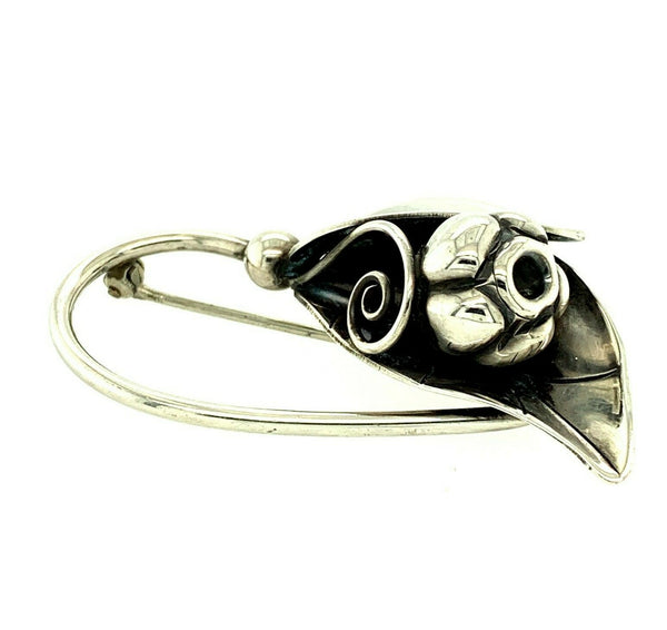 Sterling handwrought pin #220 made by Alphonse La Paglia with 3-D leaves and berry. It measures 2" by 1" and weighs 8.0 dwt. The pin dates from the 1940s. Exceptional piece!