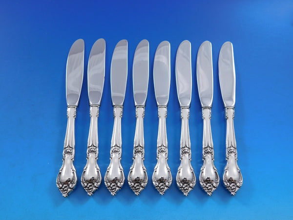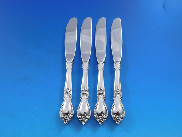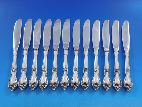 Set of 12 sterling silver Hollow Handle Butter Spreaders with stainless modern blades 6 1/4" in the pattern Alexandra by Lunt. They are not monogrammed and are in excellent condition.