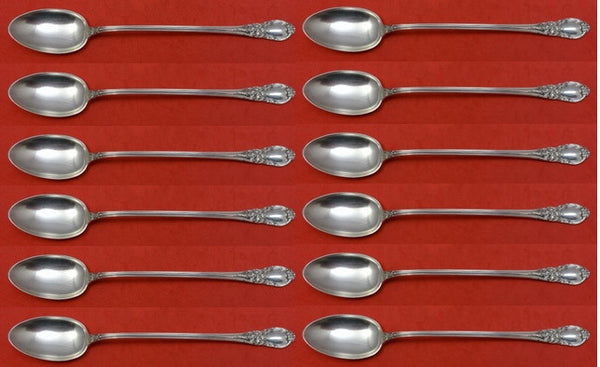Sterling silver Iced Tea Spoon Set 12 pieces 7 1/4" in the pattern American Victorian by Lunt. It is not monogrammed and is in excellent condition.