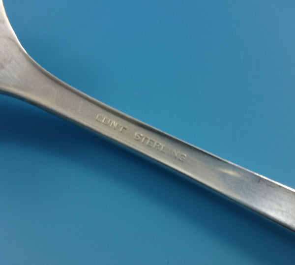 Exquisite COLONIAL THEME BY LUNT sterling silver Flatware set - 52 Pieces. This set includes:8 KNIVES, 9" 8 FORKS, 7 1/2" 8 SALAD FORKS, 6 3/4" 8 TEASPOONS, 6 1/8" 8 PLACE SOUP SPOONS, 6 7/8" 8 HOLLOW HANDLE BUTTER SPREADERS, 6 1/4" 1 SERVING SPOONS, 8 1/4" 1 COLD MEAT FORK, PIERCED, 8 1/8" 1 PICKLE FORK, 6" 1 PIE SERVER W/STAINLESS BLADE, 10 1/2" Includes bonus brand new storage chest - styles vary.