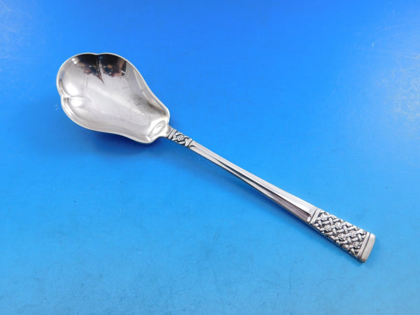 Columbine by Lunt Sterling Silver flatware set - 61 pieces. This scarce pattern features a remarkable woven, basket weave-style design with floral detailing. This set includes:
