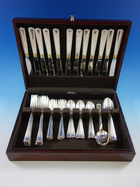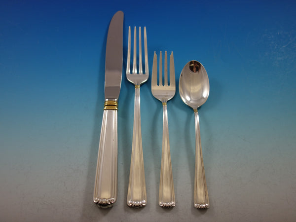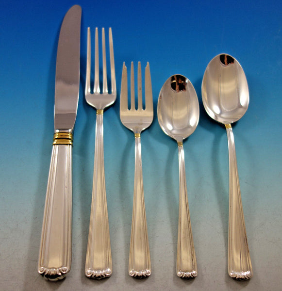 Dinner Size Embassy Scroll Gold by Lunt sterling silver Flatware set, 60 pieces. This set includes: