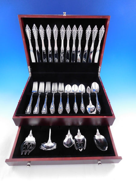 Beautiful Florentine Scroll by Lunt sterling silver Flatware set, 65 pieces. This set includes: