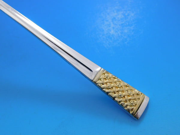 Golden Columbine by Lunt Sterling Silver flatware set - 50 pieces. This scarce pattern features a remarkable woven, basket weave-style design with floral detailing and gold accent. This set includes:
