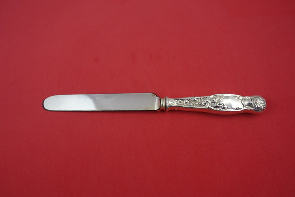 Sterling silver Regular Knife, blunt silver plated blade 8 1/2" in the pattern Heraldic by Whiting. It is monogrammed (monos vary) and is in good condition and is in as in condition.