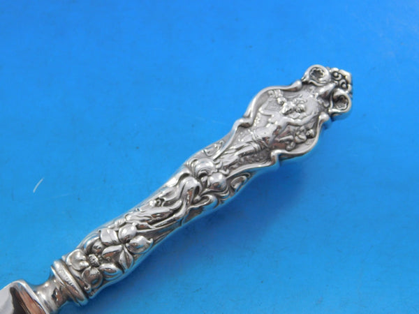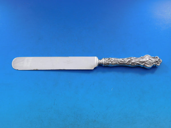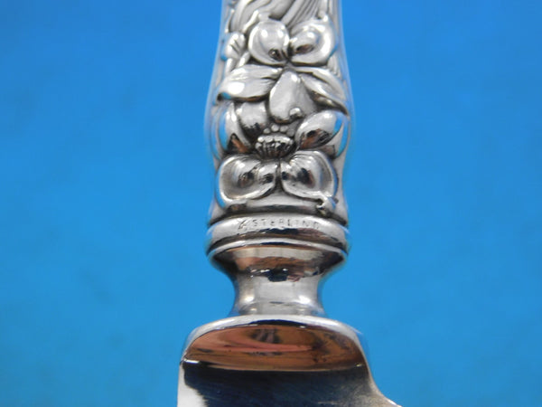 Sterling silver hollow handle with blunt silverplate blade Regular Knife 8 7/8" in the pattern Irian by Wallace. It is not monogrammed and is in good estate condition.