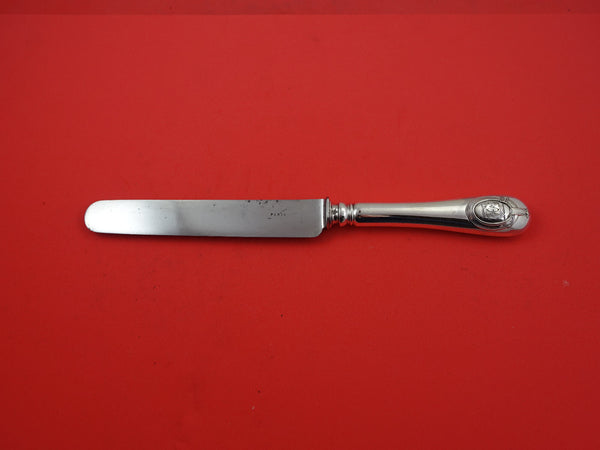 Louis XVI by Puiforcat (France) Sterling Silver hollow handle Dinner Knife with Blunt stainless blade, 9 7/8". It is monogrammed (monos vary) and is in as-is condition with pitted blade.