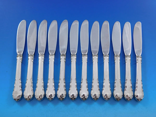 Set of 12 sterling silver Hollow Handle Butter Spreaders with stainless modern blades 6 1/4" in the pattern Modern Victorian by Lunt. They are not monogrammed and are in excellent condition.
