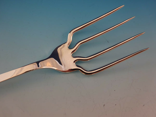 Sterling silver custom made Hot BBQ Beef Serving Fork with splayed tines, 7 1/2" , in the pattern Monticello by Lunt. It is not monogrammed and is in excellent condition. This all-sterling serving fork is perfect for serving hot meats such as brisket, ribs, roasts, and more!
