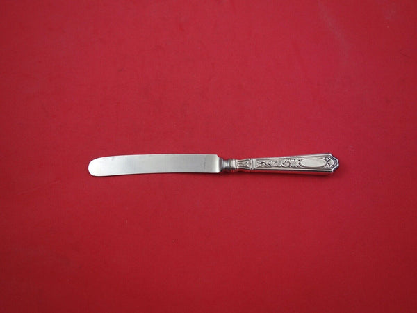 Sterling silver Junior Knife, blunt 7 1/2" in the pattern Saint Dunstan Chased by Gorham. It is monogrammed (monos vary) and is in good vintage condition.