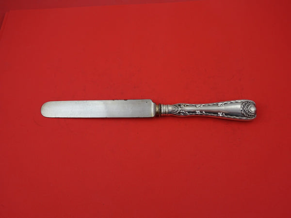 Sterling silver hollow handle with blunt blade Banquet Knife, 10 1/2" in the pattern Wave Edge by Tiffany and Co. It is monogrammed (monos vary) and has some minor wear to blade and is in as-is condition.