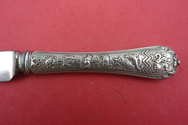 Sterling silver Dessert Knife, hollow handle silver plated blunt blade and all zodiac signs,