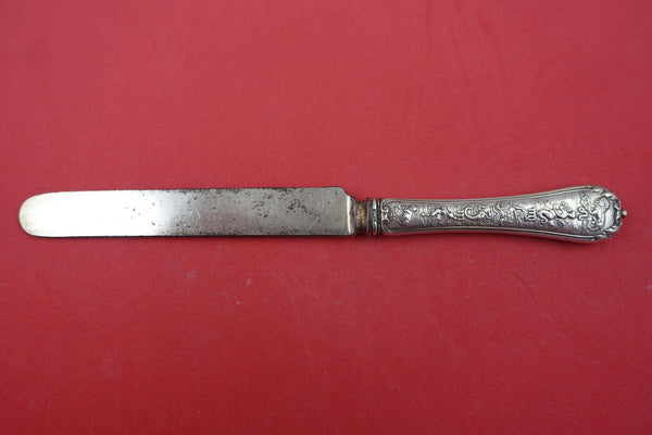 7 1/2" in the pattern Zodiac By Gorham. It is monogrammed (monos vary) and is in as-is condition with some wear to blade (as shown).