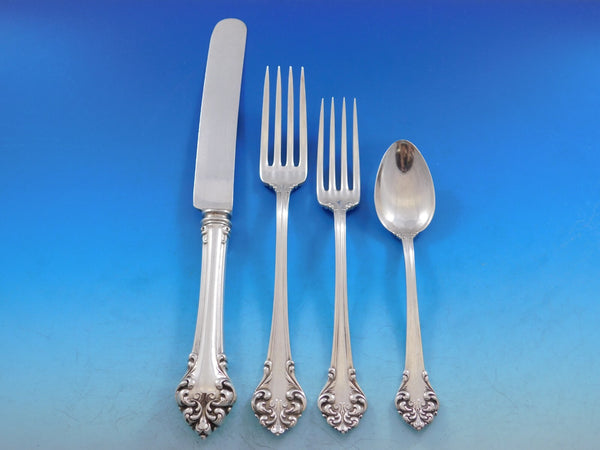 Outstanding monumental Dinner and Luncheon Elegante by Reed and Barton sterling silver Flatware set, 102 pieces. This set includes: