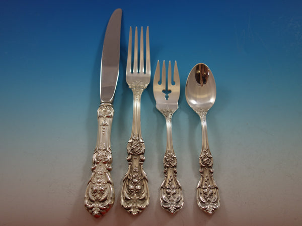 Gorgeous Dinner Size Francis I by Reed and Barton sterling silver Flatware set, 40 pieces with newer script Reed Barton hallmarks. This set includes: