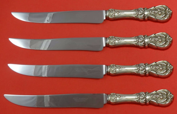 Sterling silver hollow handle with stainless blade Steak Knife Set (Large Texas Sized), 4-piece Custom Made 10" in length in the pattern Francis I by Reed and Barton. It is not monogrammed and is in excellent condition. Bigger and bolder than a table knife. Effortlessly cut through the thickest steaks with our "TEXAS SIZED" steak knives! 4-piece set! Impressive!