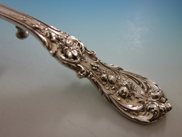 Sterling silver large and impressive all-sterling Stuffing Spoon with Button 14" in the pattern Francis I by Reed Barton. The button on the back