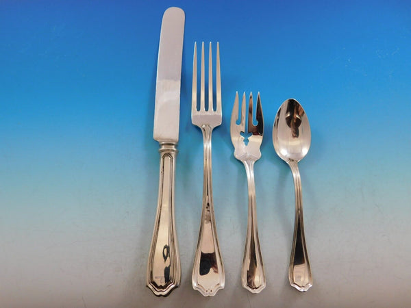 Monumental Dinner and Luncheon Size Hepplewhite by Reed Barton sterling silver Flatware set, 129 pieces. This tailored, timeless pattern is a best seller. This set includes:
