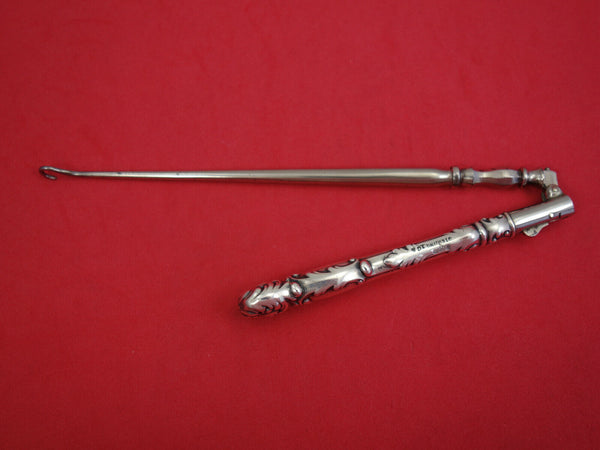 Sterling silver handle Boot or Button Hook mechanical, rare 12" in the pattern La Reine by Reed Barton. It is not monogrammed and is in excellent condition. It has a mechanism to fold in half, presumably for ease of storage. Unusual!