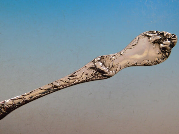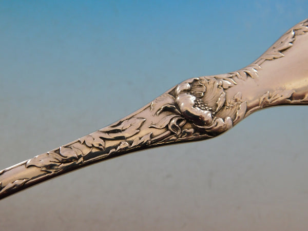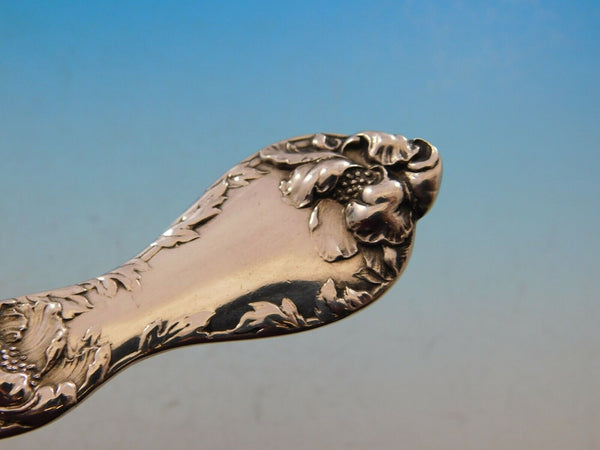Lovely sterling silver Asparagus Server measuring 9 1/2" in the pattern Les Cinq Fleurs by Reed Barton. This beautiful floral (5 flowers), multi-motif Art Nouveau pattern was introduced in the year 1900. This piece features a stunning pierced serving area. It is not monogrammed and is in excellent condition.