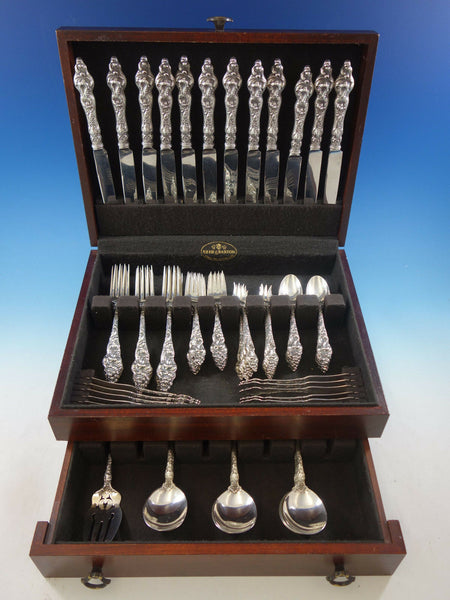Gorgeous monumental Les Six Fleurs Reed & Barton sterling silver Dinner size Flatware set, 85 pieces. This set includes: