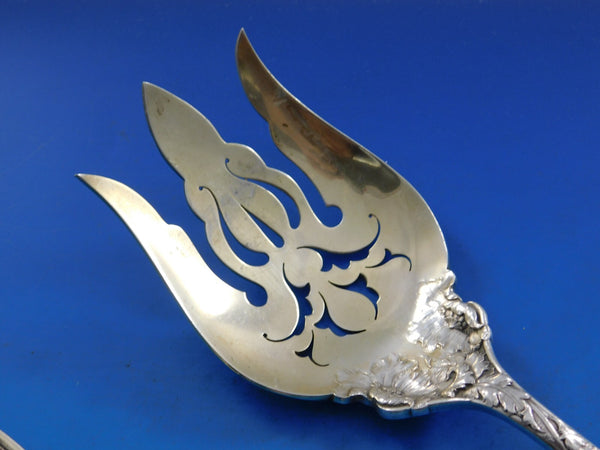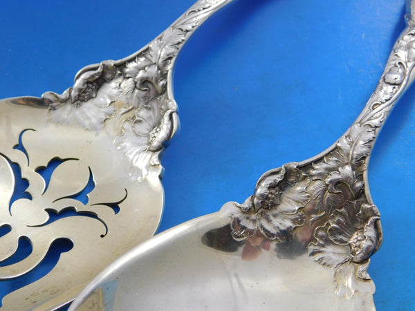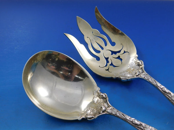 Outstanding sterling silver two-piece Salad Serving Set, lightly gold washed old hand pierced 10 3/4" in the pattern Love Disarmed by Reed and Barton. The pieces are not monogrammed and are in excellent condition. Crisp detail.