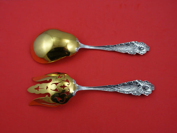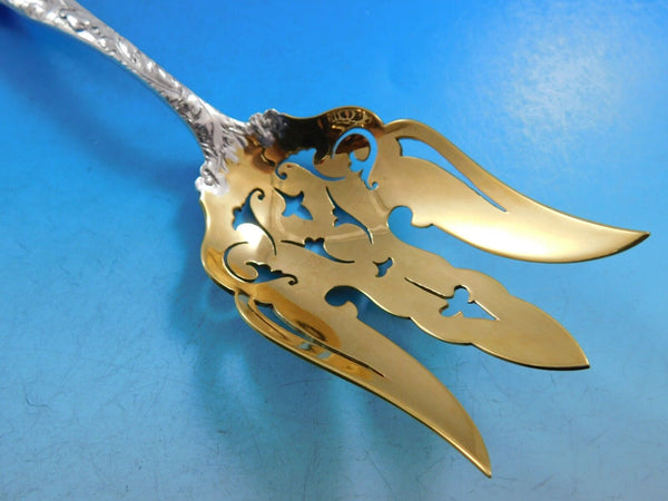 Sterling silver Salad Serving Set, gold washed, Old Rare and hand pierced 8 1/4" in the pattern Love Disarmed by Reed and Barton. It is monogrammed on the reverse and is in excellent condition.