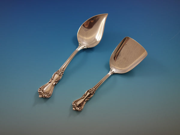 8 Forks, 7 1/4" 8 Salad Forks, 6 1/8" 8 Teaspoons, 5 3/4" 8 Cream Soup Spoons, 5 7/8" 8 Hollow Handle Butter Spreaders, 6 1/4" 1 Gravy Ladle, 6 7/8" 1 Cake Server w/stainless blade, 10" 1 Nut shovel, 4 7/8" 1 Jelly Server, 5 7/8"