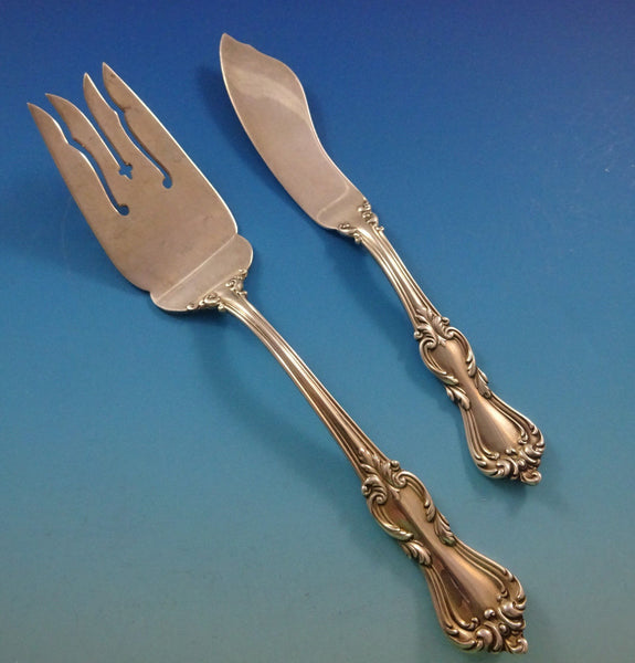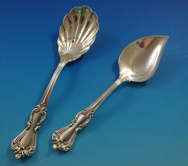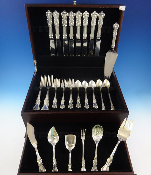 MARLBOROUGH BY REED BARTON DINNER SIZE sterling silver flatware set, 47 pieces. This set includes:8 DINNER SIZE KNIVES, 9 5/8" 8 DINNER SIZE FORKS, 7 3/4" 8 SALAD FORKS, 6" 8 TEASPOONS, 5 3/4" 8 ICED TEA SPOONS, 7 3/4" 1 COLD MEAT FORK, 8" 1 SUGAR SPOON, 6 1/8" 1 FLAT HANDLE MASTER BUTTER, 7 1/8" 1 PICKLE FORK, 5 1/2" 1 PIE SERVER W/STAINLESS BLADE, 10 3/8" 1 NUT SPOON, SHOVEL SHAPE, 4 3/4" 1 JELLY SERVER, 6"