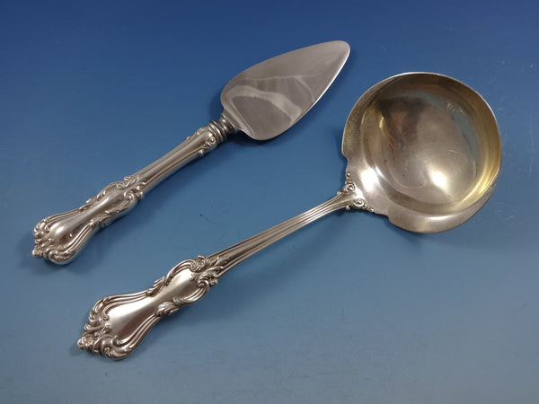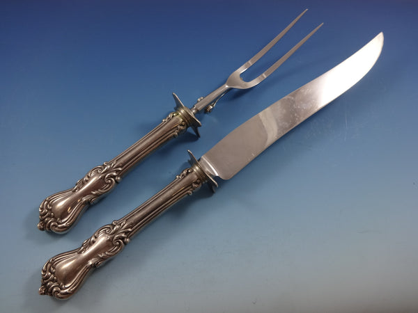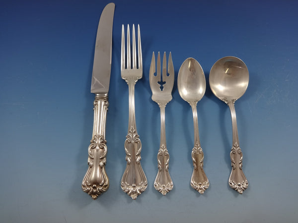 MARLBOROUGH BY REED BARTON DINNER SIZE sterling silver flatware set, 88 pieces. This set includes:8 DINNER SIZE KNIVES, 9 3/4" 8 DINNER SIZE FORKS, 7 3/4" 8 SALAD FORKS, 6" 8 TEASPOONS, 5 3/4" 8 CREAM SOUP SPOONS, 5 3/4" 8 FLAT HANDLE BUTTER SPREADERS, 5 3/4" 8 COCKTAIL FORKS, 5 1/4" 8 ICED TEA SPOONS, 7 3/4" 8 DEMITASSE SPOONS, 4 1/4" 8 ICE CREAM FORKS, 5 1/4" 1 CHEESE SERVER W/STAINLESS BLADE, 6 7/8" 1 GRAVY LADLE, 7" 2 SERVING SPOONS, 8 3/8" 1 COLD MEAT FORK, 9" 1 SUGAR SPOON, 5 3/4" 1 ROAST CARVING SET, KN-14" FK-11 1/4"