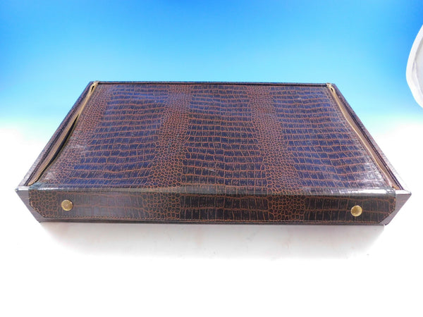 16 Knives, 9 1/8"16 Forks, 7 3/816 Salad Forks, 6 1/4"16 Teaspoons, 6"16 Place Soup Spoons, 6 3/4"16 Hollow Handle Butter Spreaders, 6 1/2"1 Gravy Ladle, 6 5/8"1 Serving Spoon, 8 5/8"1 Pierced Serving Spoon, 8 5/8"1 Cold Meat Fork, 8 1/2"1 Sugar Spoon, 6 1/8"1 Hollow Handle Master Butter, 7"1 Nut Spoon, 4 3/4"1 Cheese Server w/stainless blade, 7 1/4"Includes a BONUS vintage zipper storage chest (chest as-is).
