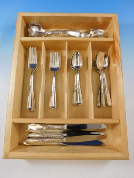 Silver Wheat by Reed Barton Sterling Silver flatware set, 33 pieces. Great starter set! This set includes:6 KNIVES, 8 3/4" 6 FORKS, 7 1/4" 6 SALAD FORKS, 6 3/4" 6 TEASPOONS, 6 1/8" 6 CREAM SOUP SPOONS, 6 3/8" 1 GRAVY LADLE, 6 1/4" 1 PIERCED SERVING SPOON, 8 5/8" 1 SUGAR SPOON, 6 3/8"