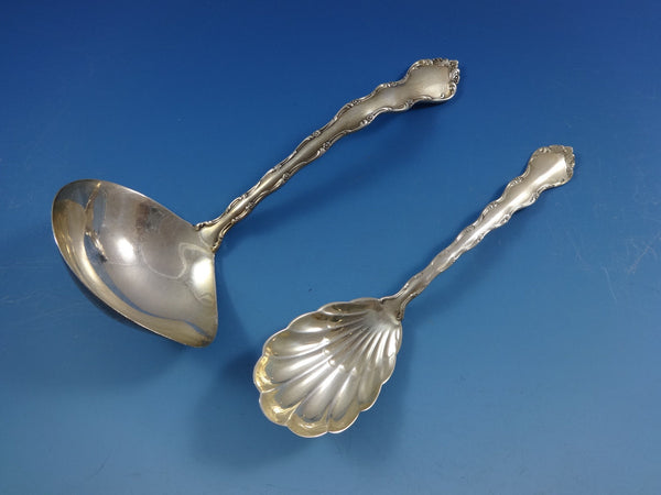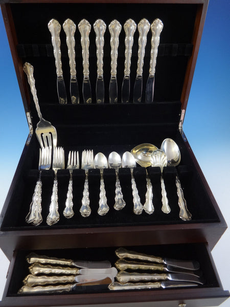 Beautiful TARA BY REED BARTON sterling silver Flatware set - 44 pieces. This set includes:8 KNIVES, 9" 8 FORKS, 7 1/4" 8 SALAD FORKS, 6 1/2" 8 TEASPOONS, 6" 8 HOLLOW HANDLE BUTTER SPREADERS, 6 3/8" 1 GRAVY LADLE, 6 1/2" 1 SERVING SPOON, 8 1/2" 1 COLD MEAT FORK, 8 1/2" 1 SUGAR SPOON, 6 1/8" Includes bonus brand new storage chest - styles vary. Excellent condition, not monogrammed. This set will be professionally polished to pristine condition prior to