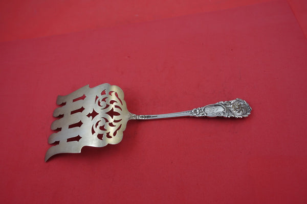 Sterling Silver Asparagus Serving Fork, gold washed with engraved detailing 9 1/4" in the pattern Trajan by Reed and Barton. It is monogrammed (monos vary) and is in excellent condition.