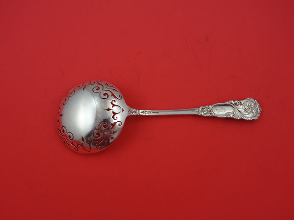 Sterling Silver Pea Spoon gold-washed, pierced edge, 8 1/4" in the pattern Trajan by Reed and Barton. It is monogrammed (monos vary) and is in excellent condition.