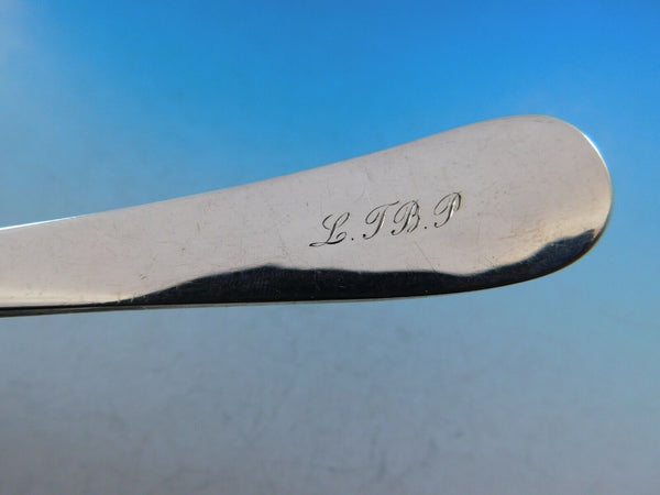 Masterfully crafted sterling silver Pea Spoon measuring 8 1/2" in the pattern Antique Engraved aka Custom Engraved by Tiffany Co. This pattern is exceedingly rare with intricate hand engraved design. This piece features a lovely scalloped bowl with piercings. It is monogrammed (see photo) and is in excellent condition.