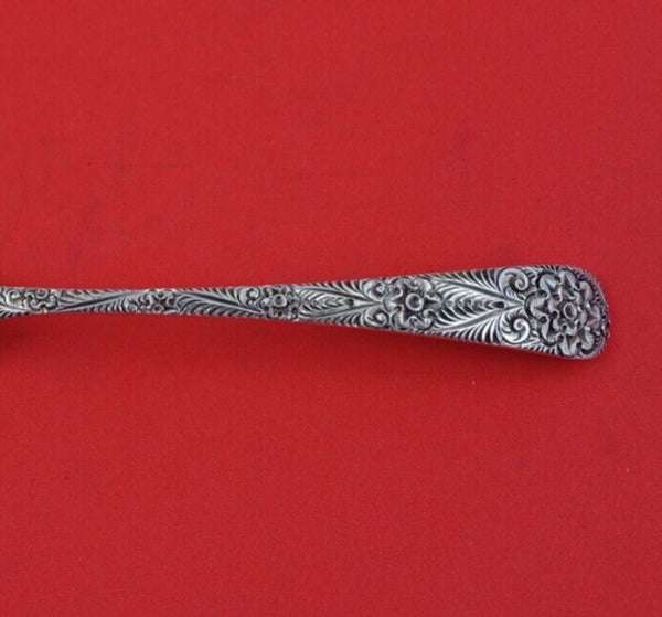 Sterling silver Sugar Spoon 6 1/4" with faint gold wash in bowl in the pattern Antique Engraved aka Custom Engraved by Tiffany and Co. It is monogrammed on the reverse (monos vary) and is in excellent condition.