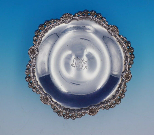 Gorgeous Blackberry by Tiffany and Co sterling silver raised compote featuring a pierced design of blackberries and flowers with beading. This piece is marked #13964/6052 with script "m" date letter for 1907-47.