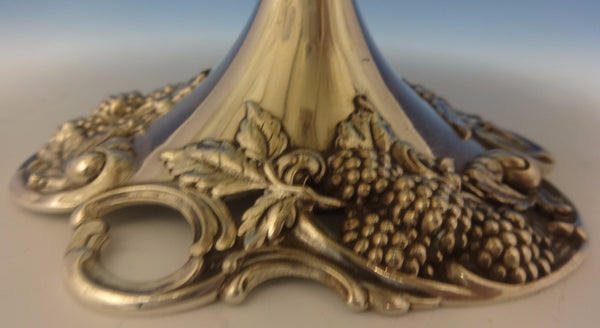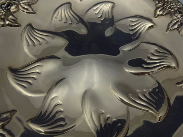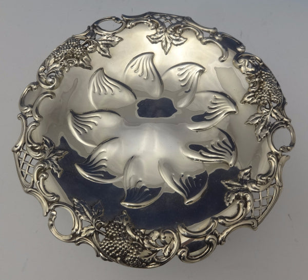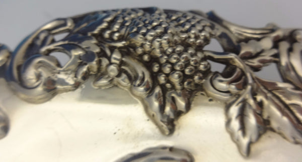 Stunning Blackberry by Tiffany and Co sterling silver tazza. It features a border of raised blackberries with leaves and pierced lattice. The center is repoussed with stylized leaves. The base is also decorated with blackberries. It was retailed by the Black Starr and Frost store. It measures 3 1/4" tall, 7 1/2" in diameter, and it weighs 13.2 ozt. It is not monogrammed and is in excellent condition.