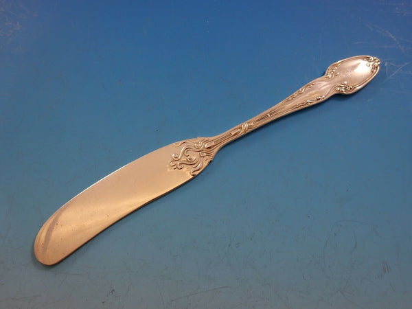 Sterling silver Flat Handle Butter Spreader 6" in the pattern Broom Corn by Tiffany and Co. It is monogrammed (monograms vary) and is in excellent condition.