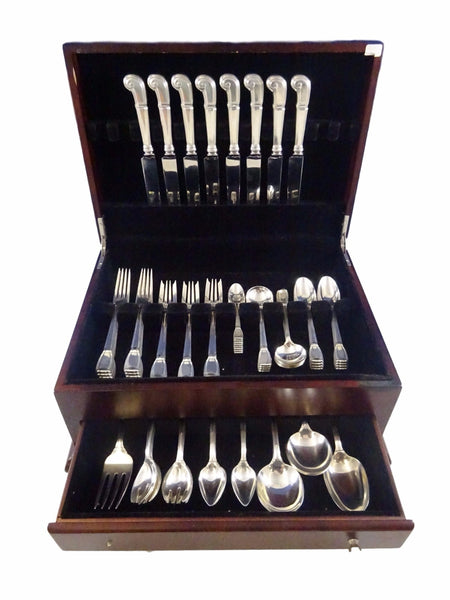 includes:8 Knives, 9 1/4" 8 Forks, 7" 8 Salad Forks, 6 3/4" 8 Teaspoons, 6" 8 Demitasse Spoons, 4 3/8" 8 Bouillon Spoons, 5 3/8" 8 Ice Cream Forks, 5 7/8" 8 Gumbo Spoons, 7 3/8" 8 Grapefruit Spoons, 5 7/8" 1 Serving Spoon, 8 5/8" 1 Cold Meat Fork, 8 3/4" Includes bonus brand new storage chest - styles vary.