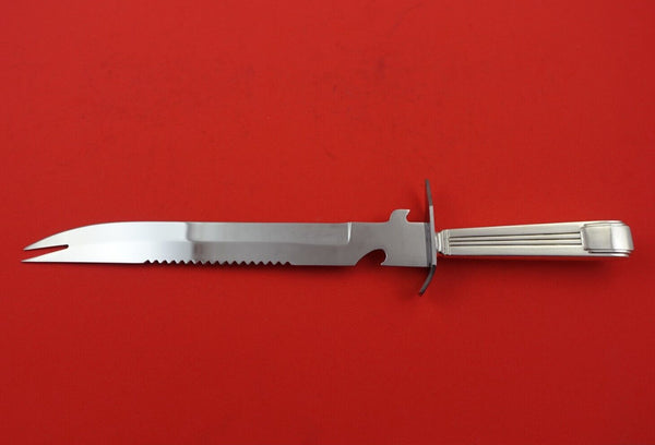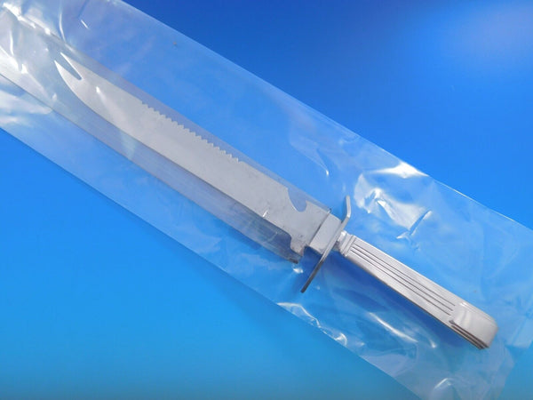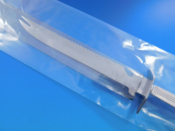 Sterling silver hollow handle with stainless blade Ham Slice, approximately 11 1/4" in total length, custom made in the pattern Century by Tiffany and Co. The blade itself measures 7 1/2" with a guard at the end. One side of the blade is beveled and the other is serrated. The tip of the blade features two prongs for picking up meat. It is not monogrammed and is in excellent condition.