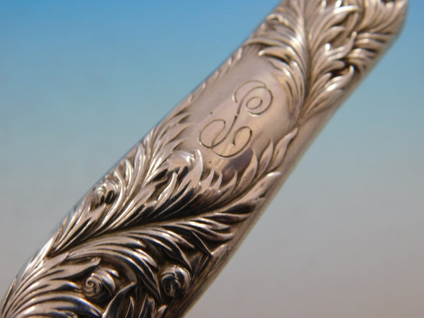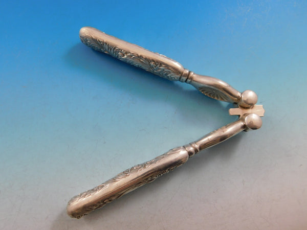 Unique sterling silver Nut Cracker measuring 5 1/2" in the pattern Chrysanthemum by Tiffany. This piece features a stunning chrysanthemum motif that flows down the handles. This piece features two hollow handles and a steel center implement. It is monogrammed (see photo) and is in excellent condition.