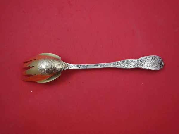 Sterling Silver Salad Serving Fork, gold washed 10 1/4" in the pattern Chrysanthemum by Tiffany. It is not monogrammed and is in excellent condition.