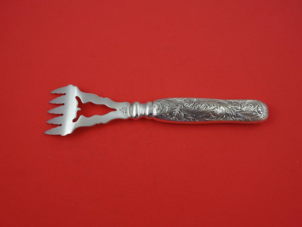 Sterling silver Trout Serving Fork, hollow handle all sterling pierced with 5-tines and rare 8" in the pattern Chrysanthemum by Tiffany and Co. It is monogrammed (monos vary) and is in excellent condition.