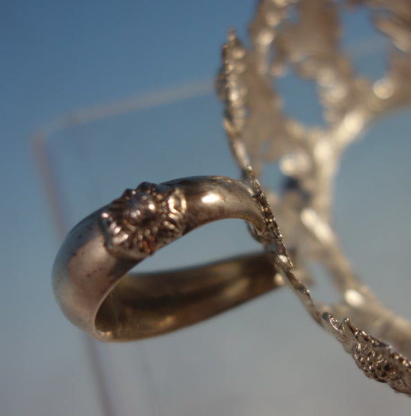 Chrysanthemum by Tiffany Co. sterling silver bouillon cup with gold chrysanthemum liner. The cup is marked with #14782/4848, and has an "M" date mark that dates from 1873-91. It measures 2 1/2" tall (with liner) x 5" wide and weighs 2.9 ozt. (without liner). It is not monogrammed and is in excellent condition. Absolutely gorgeous!